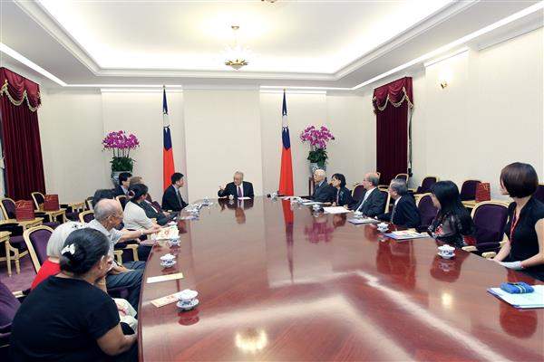 訪賓一行包括「國際失智症協會」執行長Marc Wortmann、「社團法人臺灣失智症協會」理事長邱銘章與秘書長湯麗玉,以及失智症病友暨家屬等一行10餘人,上午前來總統府拜會副總統,行政院衛生署副署長林奏延也在座。