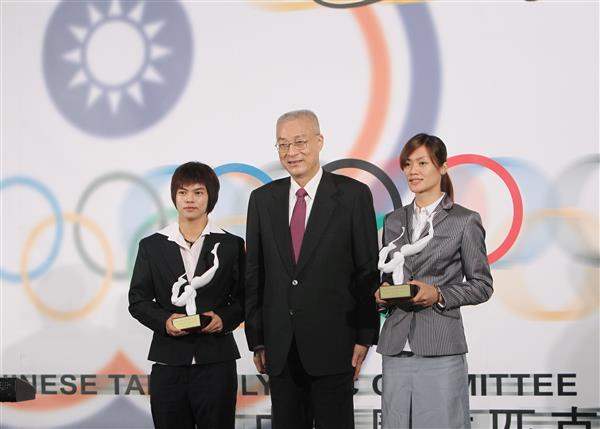 隨後,副總統頒發獎座給參加今年倫敦奧運獲得舉重銀牌的許淑淨及跆拳道銅牌的曾櫟騁2人,表彰其為國爭光。今天出席活動者還包括教育部長蔣偉寧、外交部次長史亞平、「國際奧林匹克委員會」執行委員吳經國、「中華奧林匹克委員會」主席蔡辰威及「財團法人希望基金會」董事長紀政等。