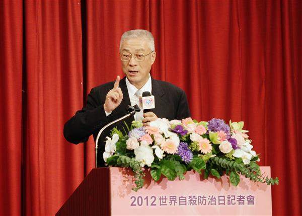 今天是「世界自殺防治日」,吳敦義副總統下午出席由「臺灣自殺防治學會」與「全國自殺防治中心」共同舉辦的「讓愛萌芽‧活出希望」--2012世界自殺防治日記者會,呼籲國人關注自殺防治議題,並期盼用愛與關懷持續推廣珍愛生命理念,共同守護每一個寶貴的生命。
