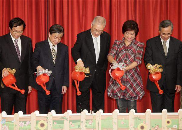 隨後,副總統與行政院衛生署長邱文達、「臺灣自殺防治學會」理事長李明濱及秘書長廖士程等人共同啟動「讓愛萌芽‧活出希望」儀式。