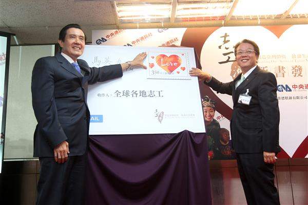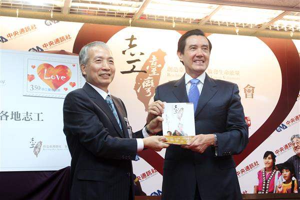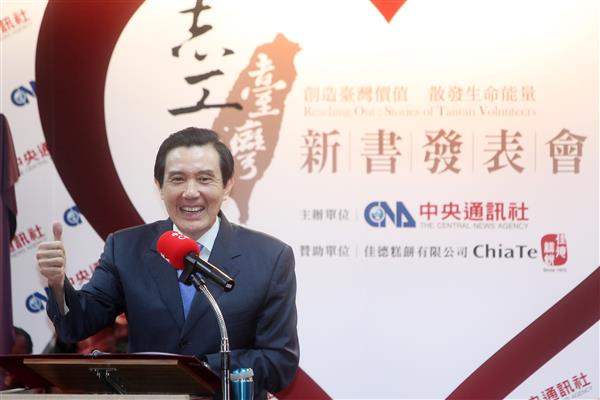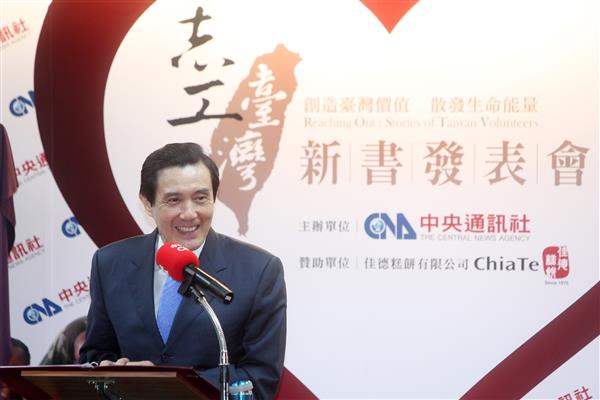 馬英九總統上午赴中央通訊社出席《志工臺灣-創造臺灣價值 散發生命能量》新書發表會,除暢談「分享哲學」及我國人在捐款、捐血、捐器官與認養兒童等領域重大成就外,也期勉國人持續發揮奉獻及分享精神,以展現我國軟實力。