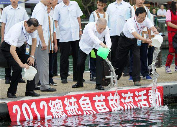 副總統出席「總統魚魚苗放流」活動暨「2012日月潭國際萬人泳渡」