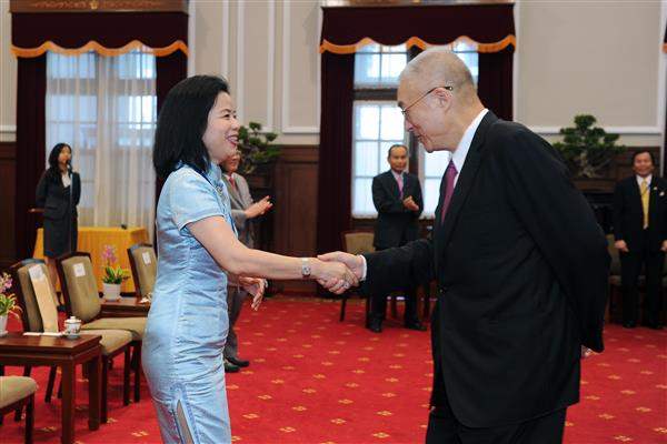 訪賓一行約50人,由「中華民國愛盲協會」理事長林孟雪率領,行政院衛生署副署長戴桂英陪同,前來總統府晉見副總統。