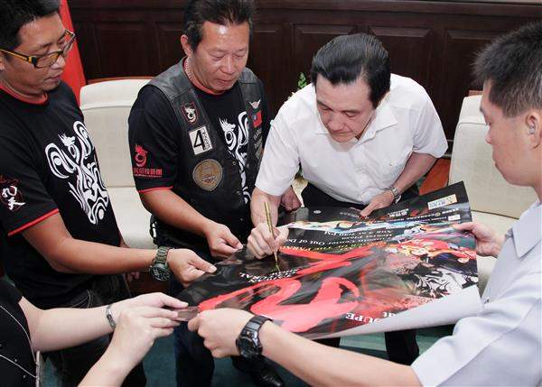 馬英九總統上午接見「九天民俗技藝團」團員一行,對該團此次獲邀前往美國紐約「林肯中心」參加「夏日戶外藝術節」活動演出,將臺灣傳統陣頭文化介紹給紐約觀眾,表達誠摯感謝與肯定之意。