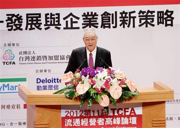 吳敦義副總統上午出席由「臺灣連鎖暨加盟協會」所主辦的「第11屆流通經營者高峰論壇」,期許藉由此次論壇的舉辦,以臺灣為立基點,帶領臺灣連鎖加盟業邁向國際舞台,開創臺灣連鎖加盟業發展的新思維,再創臺灣經濟新高峰。