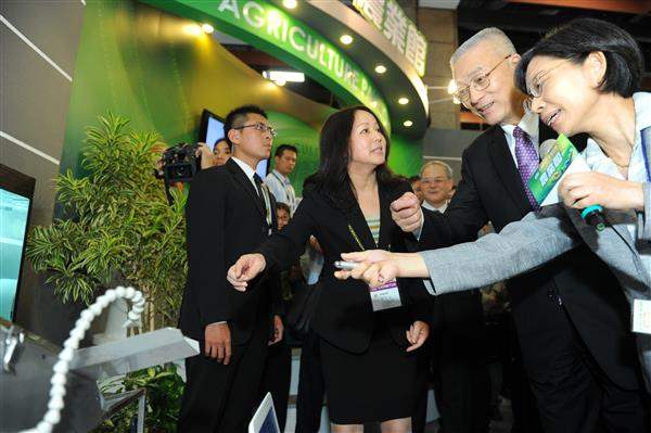 隨後,副總統與經濟部梁次長國新、行政院國家科學委員會主任委員朱敬一、國防部人事參謀次長陳泉官、行政院農業委員會副主任委員陳文德、中華民國對外貿易發展協會秘書長趙永全及工業技術研究院副院長吳東權等,共同啟動開幕儀式;副總統並參觀包括經濟部、國防部、教育部、國科會與行政院農委會等參展單位。
