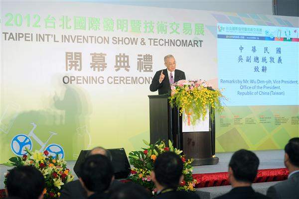 吳敦義副總統下午出席「2012年臺北國際發明暨技術交易展」,期盼藉由此一發明展,將發明專利與專利技術交易兩者緊密結合,並將智慧資產商品化,共創互惠雙贏。
