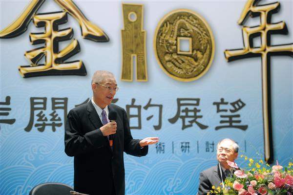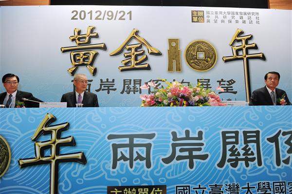 吳敦義副總統上午出席由國立臺灣大學、中共研究雜誌社及展望與探索雜誌社共同舉辦的「黃金十年兩岸關係的展望」學術研討會,闡述政府推動兩岸關係和平發展的成果與展望。