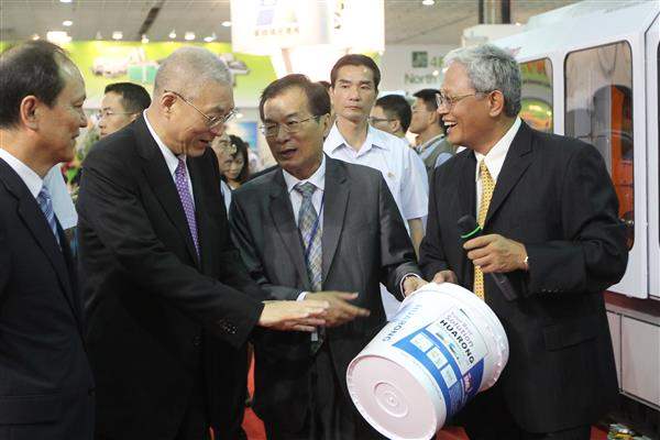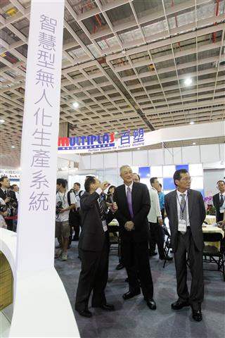 隨後,副總統由「中華民國對外貿易發展協會」副董事長吳文雅、「臺灣區機器工業同業公會」理事長徐秀滄、經濟部國際貿易局局長張俊福等人陪同參觀展場,實地瞭解塑橡膠機械工業廠商研發及創新產品之情形。