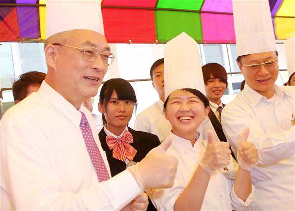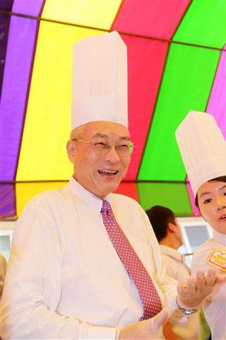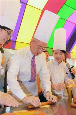副總統抵達後,除親切與民眾寒暄、互動,更戴上廚師帽、圍裙與手套,親手製作芋頭口味月餅,並發送月餅成品予岀席長者,現場氣氛十分溫馨而熱鬧。