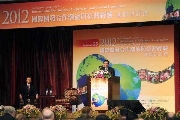 總統在英文致詞時表示, 中華民國是世界上少數從接受外援,變成對外援助的國家,從50年代開始,臺灣接受美國的經濟援助,時間長達15年;藉由這些外援,我國得以發展水電及鐵路等各項基礎設施,經濟發展策略亦由「進口替代」逐步轉為「出口擴張」。後來我國成立農業技術團,開始對非洲等友邦提供農業技術援助,逐步發展援外體系。