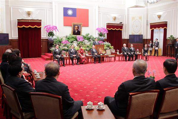 馬英九總統上午接見國際獅子會臺灣總會(MD300)各區總裁暨內閣伉儷等一行,除推崇該會對臺灣公益活動的長期貢獻,並期盼訪賓與政府一起努力,共創經濟成長。