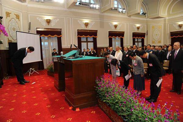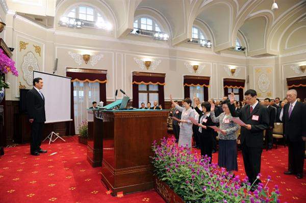 在唱國歌及向國旗、國父遺像及孔子畫像行三鞠躬禮後,先舉行宣誓儀式,宣誓人國立故宮博物院院長馮明珠、行政院衛生署副署長戴桂英、行政院經濟建設委員會副主任委員陳小紅及國家通訊傳播委員會副主任委員虞孝成等在總統監誓下宣讀誓詞。