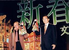 在這春暖花開的季節裡,文化總會舉辦一年一度的「新春文薈」茶會,邀請藝文界的先進、朋友們,相聚在周末假日的午後,觀賞節目,敘舊聯誼,別有一番溫馨祥和的喜氣。阿扁首先對各位的光臨,表示誠摯的歡迎;同時也祝福大家,有一個愉快的聚會,並且有一個富於創造力的新年。