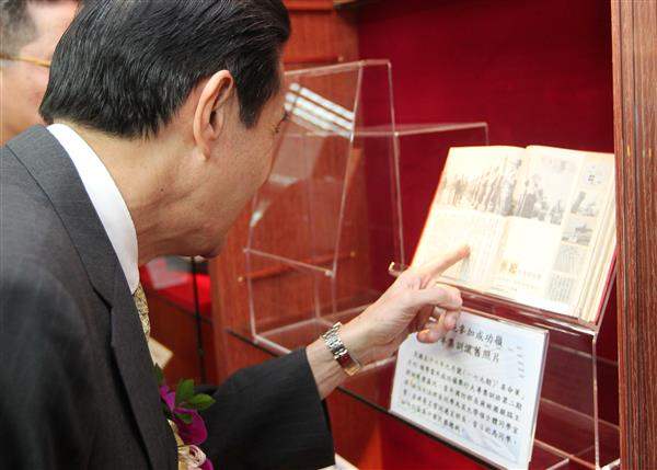 總統抵達後,首先由國家安全會議秘書長胡為真及國防部長高華柱陪同,參觀「青年日報」社史館,在該社社長朱泰榮的導覽下,深入瞭解該報創立60年來的成長軌跡。