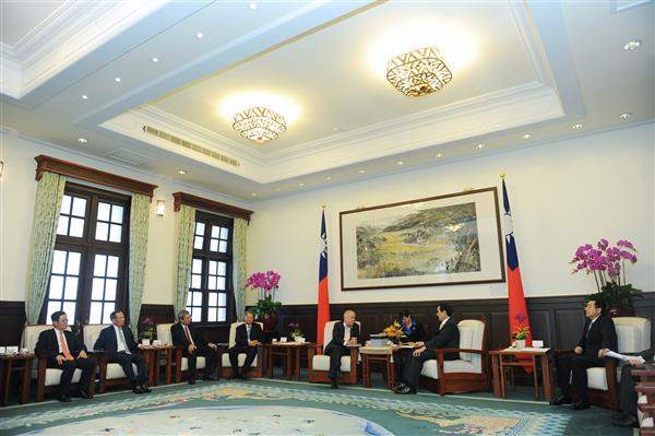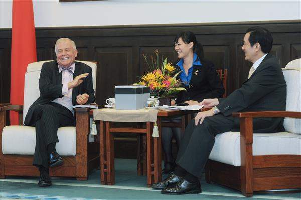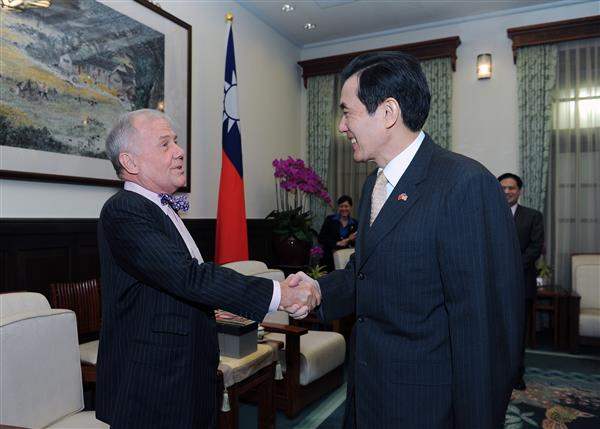 國際財經投資大師、羅傑斯控股公司創辦人兼主席吉姆.羅傑斯,以及台新金控董事長吳東亮、今周刊發行人謝金河與台新投信董事長陳瓊讚等人上午前來總統府晉見總統,包括國家安全會議諮詢委員李嘉進、行政院經濟建設委員會副主任委員吳明機也在座。