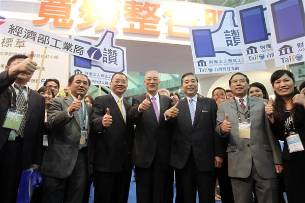吳敦義副總統上午前往臺北南港展覽館,出席「臺北國際電子產業科技展、臺灣國際寬頻通訊展、臺灣國際雲端科技與物聯網展、臺灣國際綠色產業展及臺灣國際智慧綠色城市展」聯合開幕典禮時指出,電機電子產業代表智慧,再透過雲端科技結合綠色生活產業,不僅有未來性,且一定商機無限。