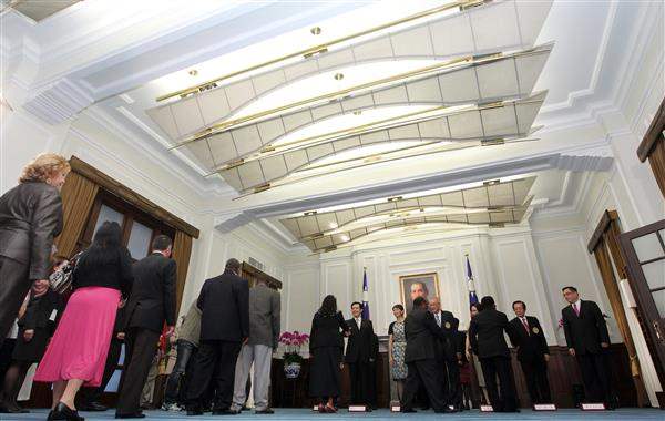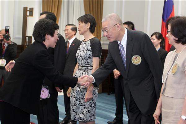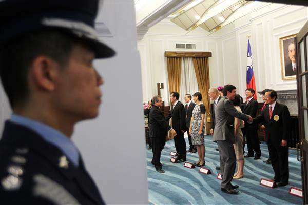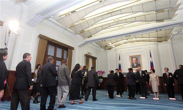 馬英九總統伉儷偕同吳敦義副總統伉儷今天上午在總統府接受駐臺使節及專程來臺參加中華民國101年國慶活動的各國慶賀團、代表們,致賀我國雙十國慶。