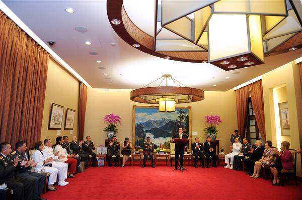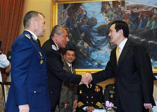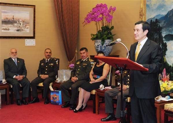 馬英九總統下午接見國防大學遠朋班101年「高階將領班」學員及眷屬時,重申我國積極改善兩岸關係之理念,同時將持續以和平方式處理各項國際爭端。