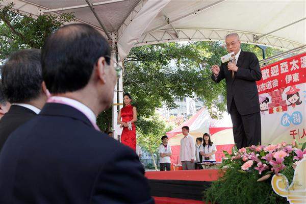 副總統致詞時表示,總統於民國90年擔任臺北市長任內,開始倡導「臺北溫泉季」活動,目前此一活動已逐步邁向國際化,今天更有來自日本松山市道後溫泉人士參與,主辦單位「臺北市溫泉發展協會」亦同時籌辦淨溪、千人捐血及種樹等活動,結合了環保、綠化及公益,深具意義,殊值肯定。