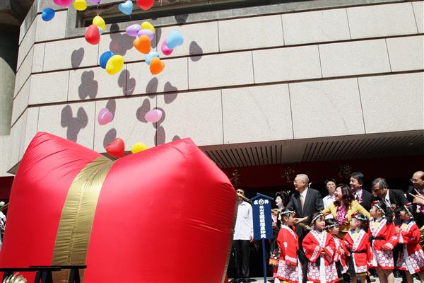 副總統也見證「臺北市建築開發公會」捐贈1萬袋捐血袋儀式,並參與桂花樹植樹活動,為環保盡一份心力;此外,日本松山市現場特別致贈2頂斥資百萬元的「兒童神轎」,副總統亦親自進行封頂儀式。