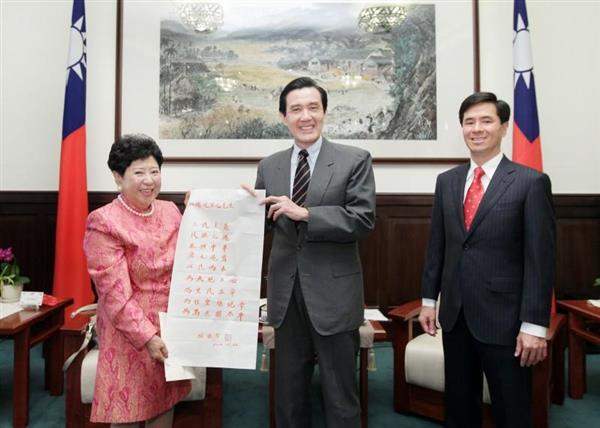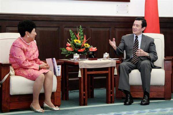 馬英九總統上午接見「孫逸仙和平教育基金會」主席孫穗芳博士,對其弘揚國父「天下為公、世界大同」理想的努力,表達由衷感佩之意。