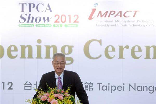 吳敦義副總統上午前往南港展覽館出席「第13屆臺灣電路板國際展覽會(TPCA Show 2012)」暨「第7屆國際機構裝置暨電路板研討會(IMPACT 2012)」開幕典禮。