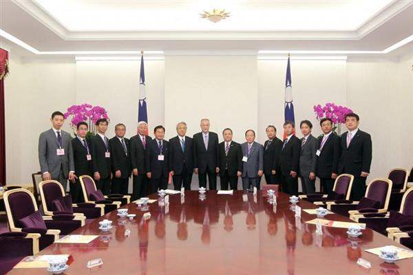 訪賓一行尚包括「福岡縣臺灣友好議員連盟」顧問藏內勇夫、吉村敏男及副會長岩元一儀、林裕二,由加地邦雄會長率領,前來總統府拜會副總統,外交部主任秘書林松煥也在座。