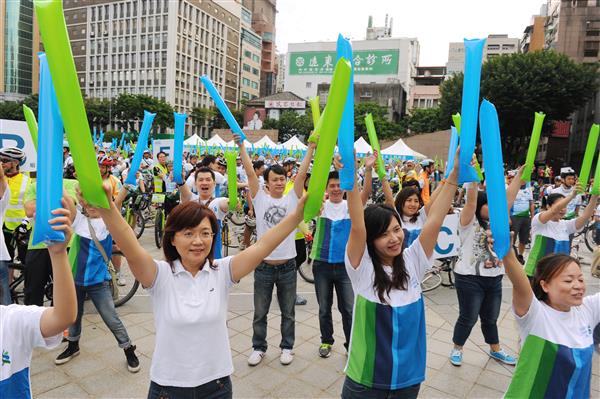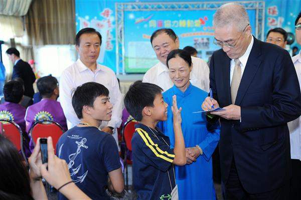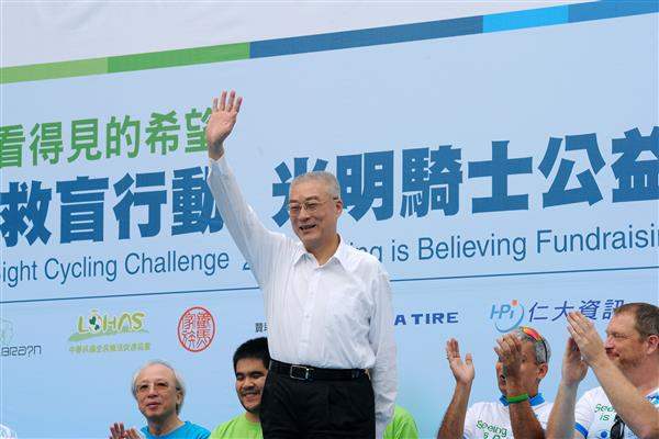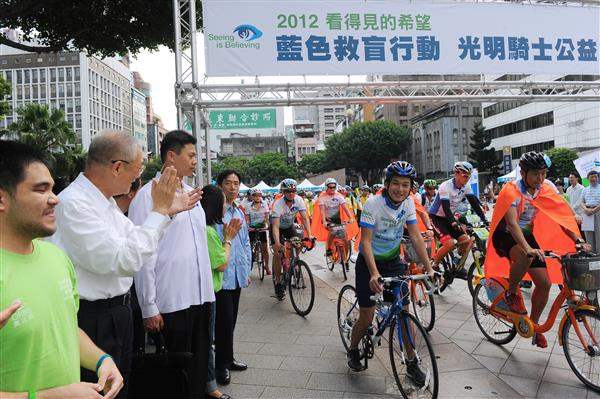 吳敦義副總統上午前往臺北市中山堂出席由「渣打國際商業銀行」與「臺灣奧比斯基金會」共同舉辦的「光明騎士公益挑戰賽」活動,為這群即將遠征百里、為視障朋友募款的騎士們加油打氣。