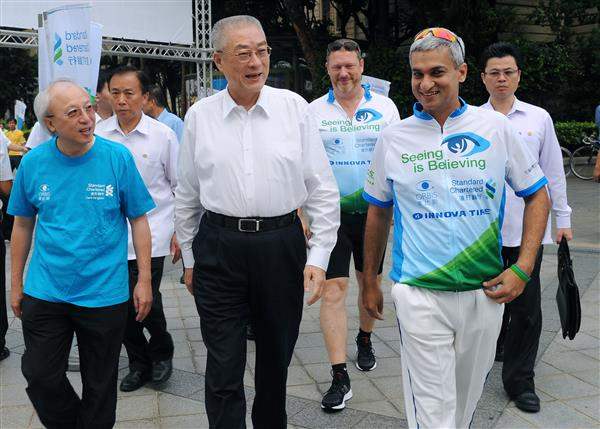 副總統並與黃裕翔、行政院體委會副主委陳雲蓮、「渣打國際商業銀行」總經理康暉杰(Ajay Kanwal)及「臺灣奧比斯基金會」董事長蔡瑞芳等一起為「光明騎士」打氣送行,預祝旅程順利成功。