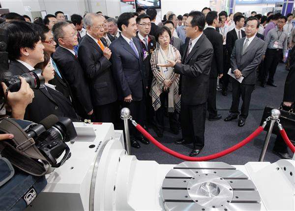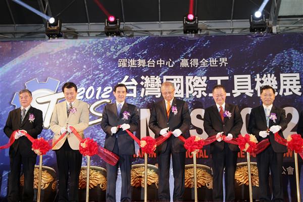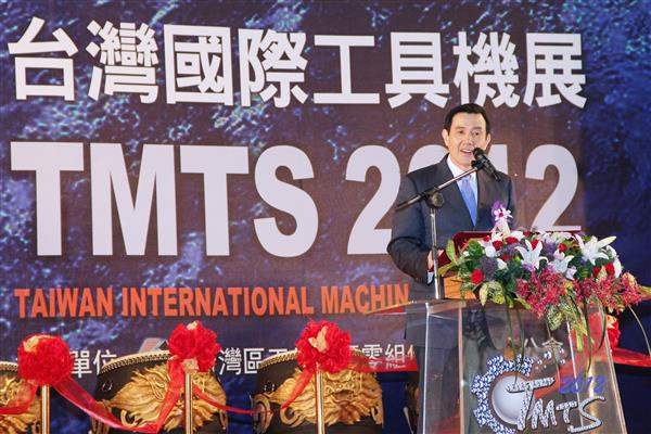 馬英九總統上午前往臺中市出席由「臺灣區工具機暨零組件工業同業公會」主辦的「2012年臺灣國際工具機展」開幕典禮,期許我國機械產業明年產值達1兆元以上,成為真正的「兆元產業」。