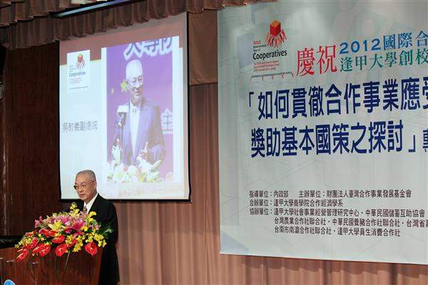 吳敦義副總統上午前往臺中市出席由逢甲大學合作經濟學系與「臺灣合作事業發展基金會」共同舉辦的「如何貫徹合作事業應受國家獎助基本國策之探討」專題研討會。