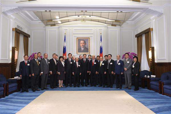 訪賓一行22人由「中華民國全國商業總會」理事長張平沼率領,前來總統府晉見總統,總統府副秘書長熊光華及經濟部次長卓士昭也在座。