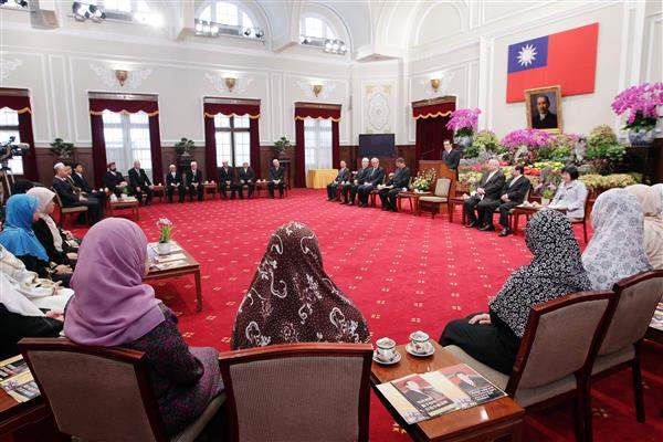 訪賓一行由「中國回教協會」理事長張明峻率領,內政部次長簡太郎陪同,前來總統府晉見總統,總統府副秘書長熊光華也在座。