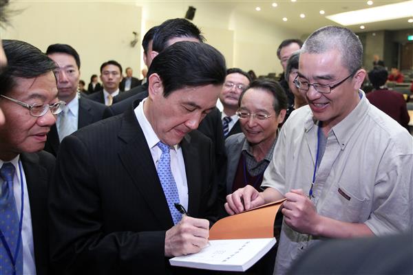 總統說,他注意到十年前上海最暢銷的非小說類出版物是大陸刑法,而今大陸城市紛紛出現臺灣著名作家朱天心、齊邦媛,甚至九把刀等人的作品,而大陸許多作家,包括今年諾貝爾文學獎得主莫言及2000年得主高行健的作品,在臺灣亦擁有相當的讀者群,顯示華文文學創作益發有整合傾向。