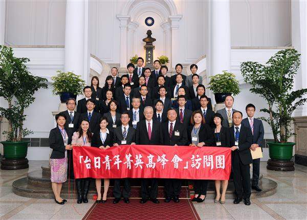 訪賓一行由「臺日青年菁英高峰會」團長幡谷公朗率領,前來總統府拜會副總統,僑務委員會副委員長呂元榮也在座。