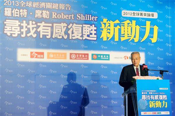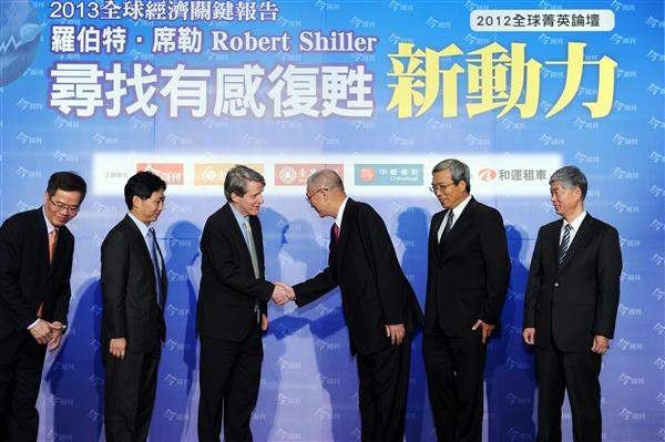 吳敦義副總統下午出席由《今周刊》與臺灣金控、臺灣銀行以及中國信託共同主辦的「2012全球菁英論壇」,代表我政府與人民歡迎美國耶魯大學教授羅伯特‧席勒( Robert Shiller)來臺演講。