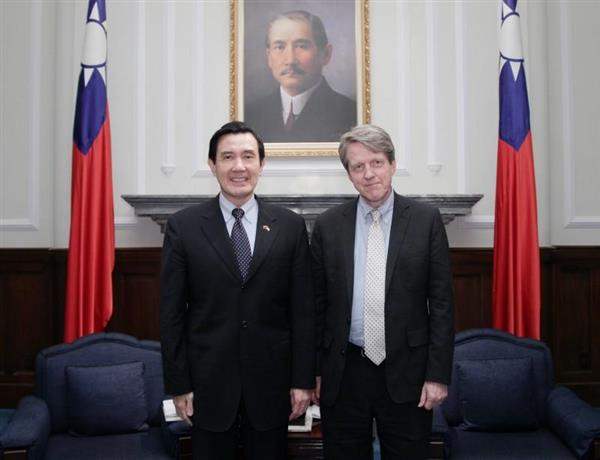 馬英九總統下午接見美國耶魯大學羅伯特‧席勒(Robert Shiller)教授,對訪賓遠道來訪,表達誠摯歡迎與感謝之忱。