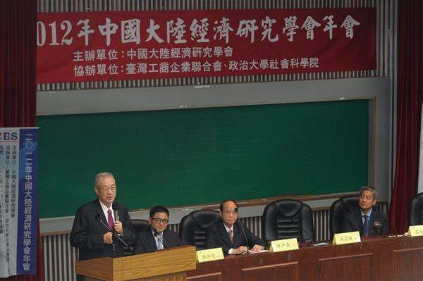 吳敦義副總統上午前往國立政治大學岀席「2012年中國大陸經濟研究學會年會」,除說明政府現階段經濟發展策略,並強調未來除持續關注中國大陸市場,亦會兼顧其它新興市場,以提升臺灣競爭力。