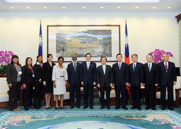訪賓一行由貝里斯駐華大使館代辦妮絲畢(Cherie Minette Nisbet)陪同,前來總統府晉見總統,總統府秘書長楊進添、國家安全會議副秘書長楊永明及外交部次長柯森耀也在座。