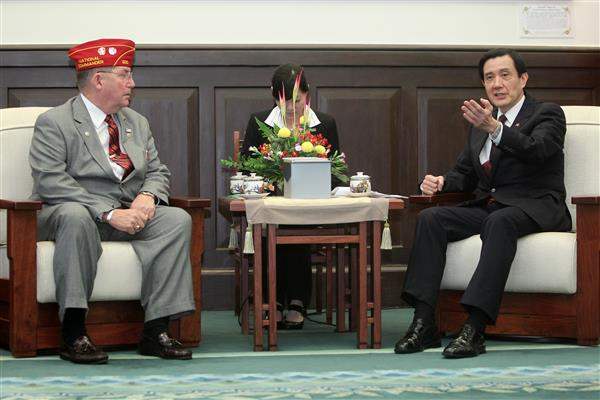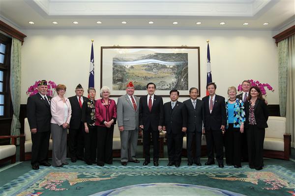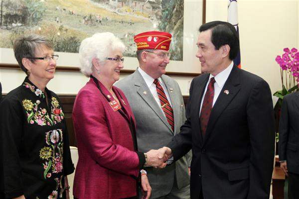 馬英九總統上午接見「美國退伍軍人協會」總會長考茲(James Koutz)伉儷暨婦女會總會長湯瑪斯(Peggy Thomas),除肯定退伍軍人在國家發展上扮演重要角色,並感謝訪賓長期以來為維持臺美安全合作關係所做的貢獻。