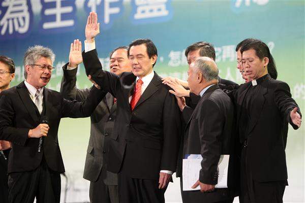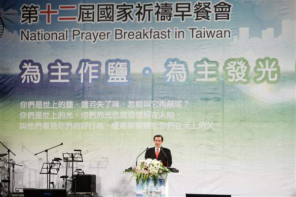 馬英九總統上午出席「第12屆國家祈禱早餐會」,與來自國內外的教友共同為臺灣祈福,並期盼國內各界一起努力,協助臺灣走出困境,邁向成功。