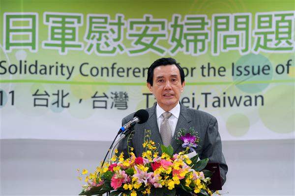 總統指出,他於十多年前擔任法務部長時,即非常關心前臺籍慰安婦議題,例如日本政府曾成立「亞洲和平女性基金會」,提出每位50萬元補償方式,希望阿嬤們能放棄追償日本的責任。為支持阿嬤們拒絕日本的補償方式,當時婦援會聯絡各界發起義賣活動,獲《商業周刊》全力支持,知名作家李敖亦特別捐出珍藏多年的文物供義賣,他與名歌手蔡琴則共同擔任義賣官,包括前副總統連戰及前省主席宋楚瑜均慷慨解囊,當時的行政院長蕭萬長亦撥款協助,最後共募得新臺幣3,800萬元善款,提供每位阿嬤各100萬元經費,協助阿嬤對日求償訴訟。
