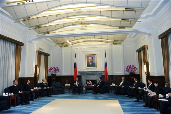 馬英九總統下午偕同吳敦義副總統與行政、司法、考試及監察院長、五院副院長及秘書長在總統府茶敘,並針對經濟振興、司法改革及年金制度改革等議題廣泛交換意見。