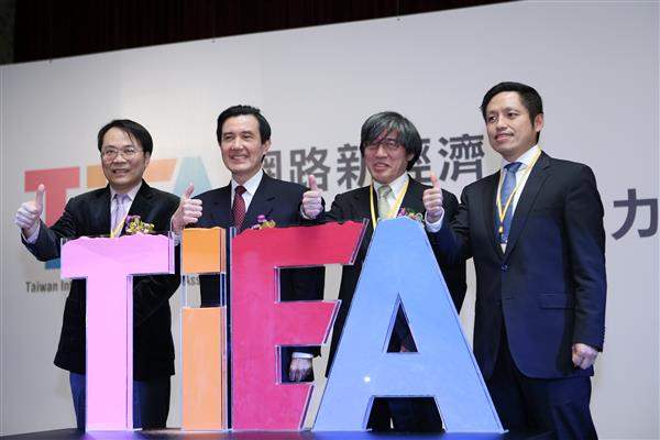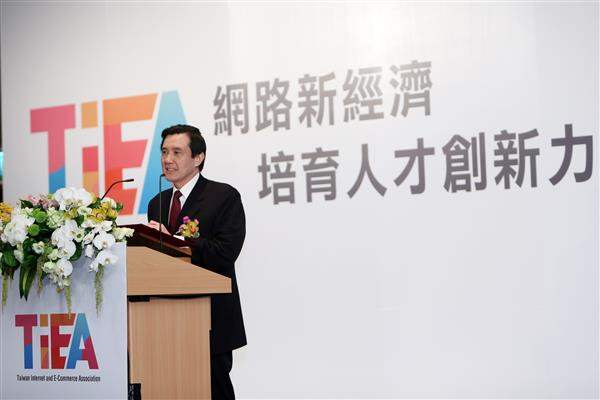 馬英九總統下午前往臺北喜來登飯店出席「臺灣網路暨電子商務產業發展協會」(TIEA)成立記者會,除肯定該協會理事長詹宏志積極推動國內電子商務產業發展,並說明政府近年來推動是項產業之成果。