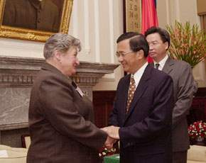 晤談時,總統並再次對布希總統東亞之行,對台灣友善的談話,表達敬佩及感動之意。總統說,明娜州長一行原訂去年間訪華,但因遭逢九一一事件而延後,他要重申,中華民國絕對與美國政府與人民站在同一邊,支持美國政府打擊恐怖主義的一切行動。