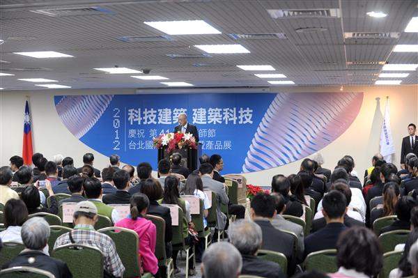 副總統說,主辦單位「中華民國全國建築師公會」今日除規劃「建築科技、科技建築」主題之論壇外,現場亦籌設「2012臺北國際建築建材暨產品展」,讓民眾一窺國內建築景象與建材多樣性,進而提升我國建築文化。