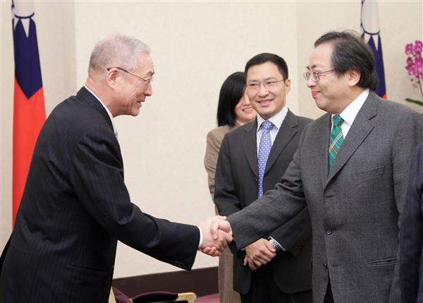 吳敦義副總統上午接見「香港蔣震工業慈善基金會」董事一行,除說明我與中國大陸經貿發展現況,亦期許國內製造業未來朝低耗能、低排碳、高值化及服務化等四大目標邁進。