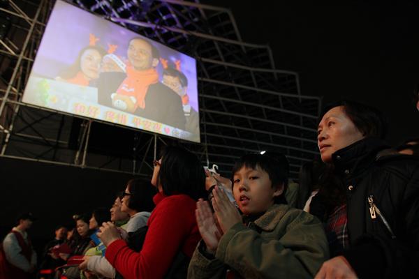 馬英九總統晚間前往高雄市出席由「臺灣基督長老教會」舉辦的「2012和好、疼惜、平安夜」報佳音活動,並與新北市同步連線,和國人同度溫馨的平安夜。