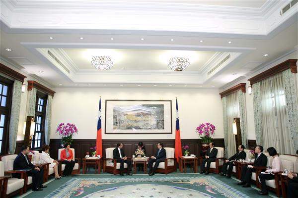 訪賓一行尚包括多明尼加駐華大使阿布爾格格(Rafaela Alburquerque),由我外交部次長柯森耀陪同,前來總統府晉見總統,總統府秘書長楊進添及國家安全會議諮詢委員甘逸驊也在座。